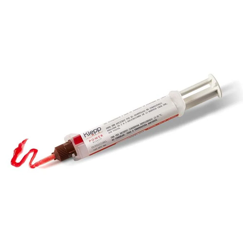 Power Bleach Gel blanqueador uso profesional en consultorio. Peróxido de hidrogeno al 35%. con fluoruro de sodio y nitrato de potasio, sustancias que reducen la susceptibilidad a caries y disminuyen la sensibilidad. La jeringa doble cartucho de auto mezcla 4:1 permite administrar la dosis precisa del activador en cada aplicación. Lo que no se mezcla puede ser utilizado posteriormente. Excelente viscosidad. Presentación: Jeringa x 5 grs. + 4 puntas aplicadoras. Categoría: Blanqueamiento