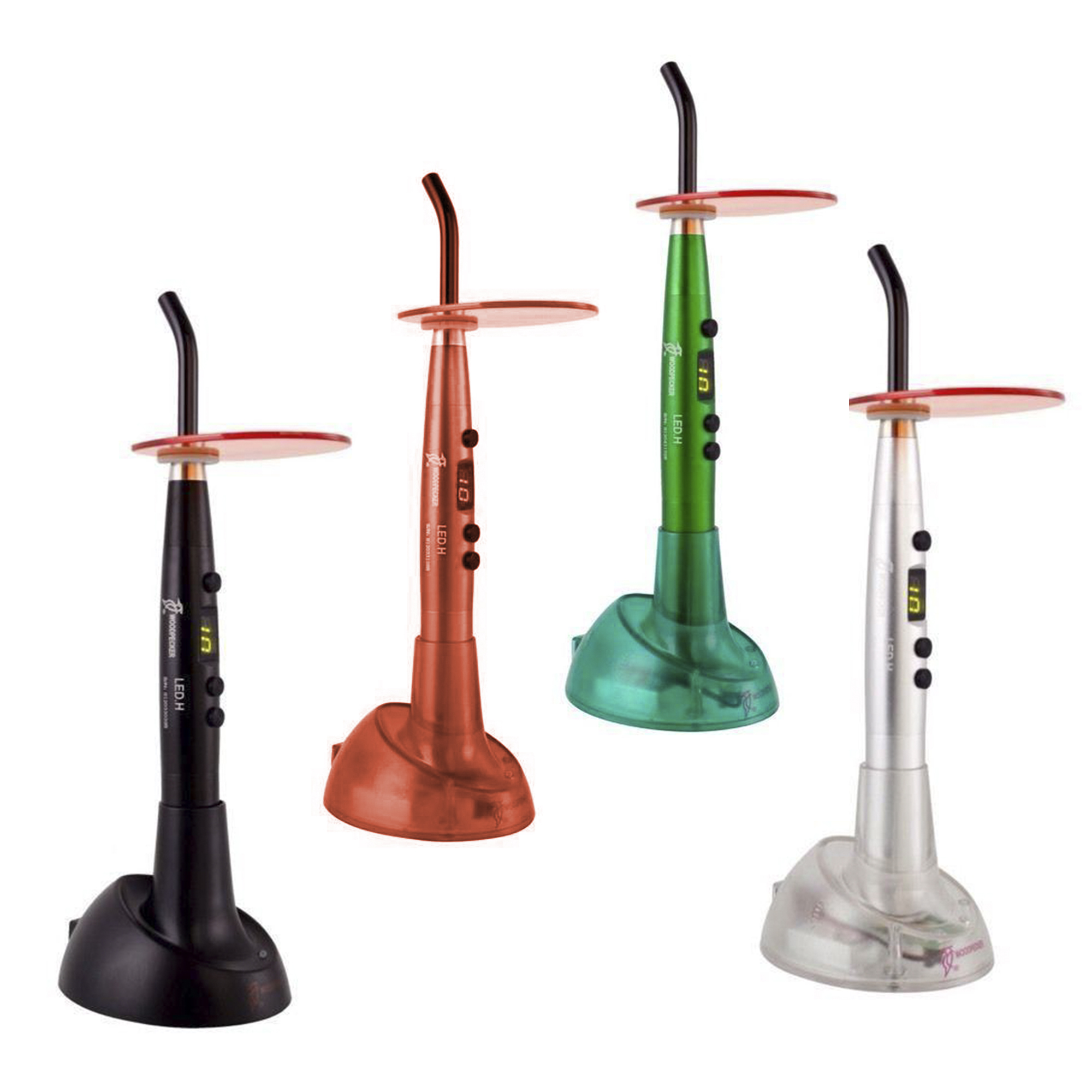 Lámpara de Fotocurado LED-H Woodpecker. Brinda un fotocurado confiable de cualquier tipo de material. Cuenta con un diseño moderno en cuatro colores para elegir (negro-aluminio-roja-verde).